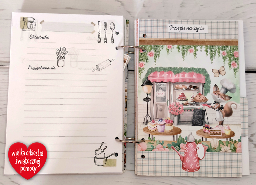 Zestaw ten wykonane został z papierów Scrap boys z kolekcji Kitchen Stories i posiada 4 wkłady na ulubione przepisy.